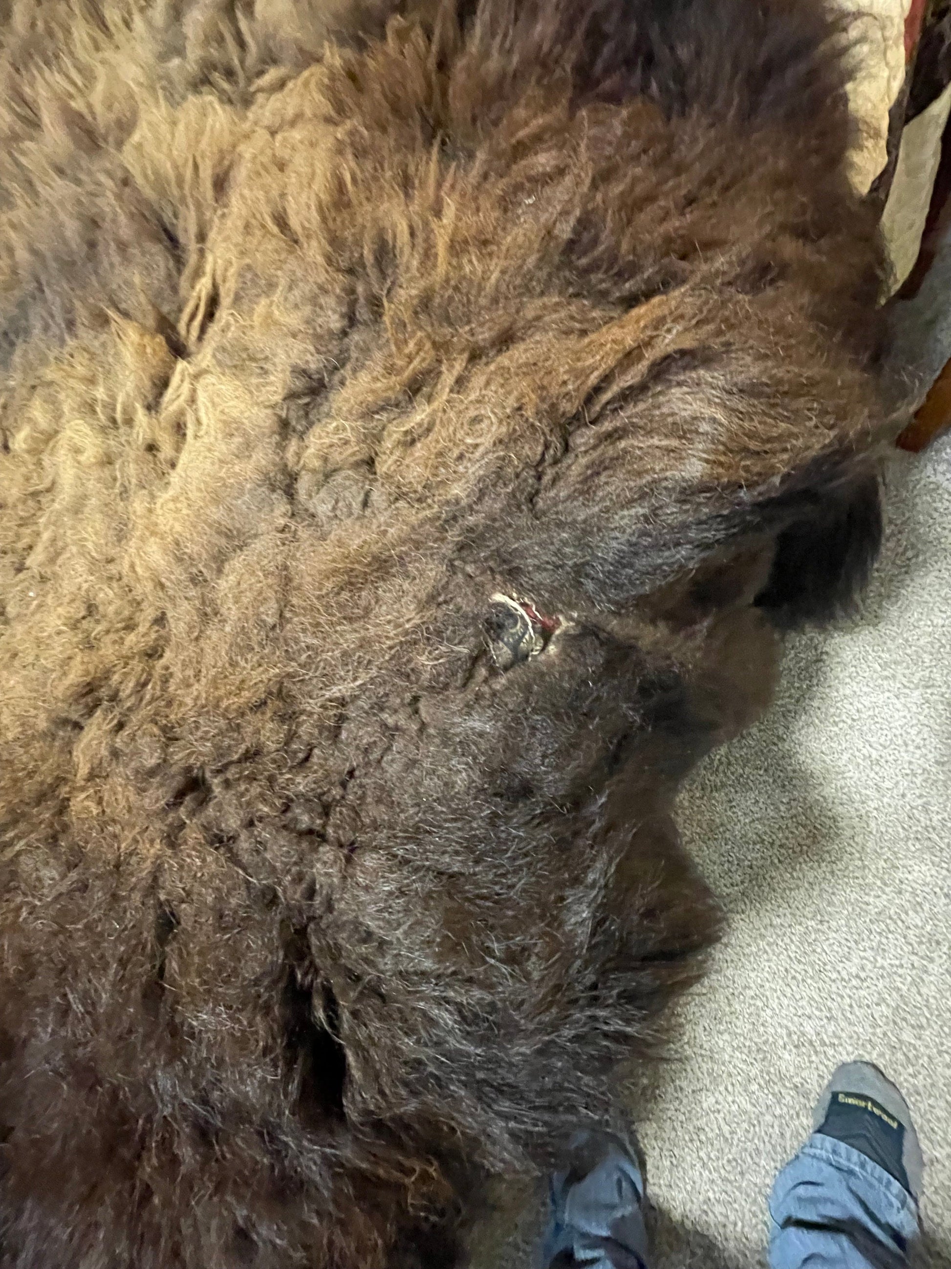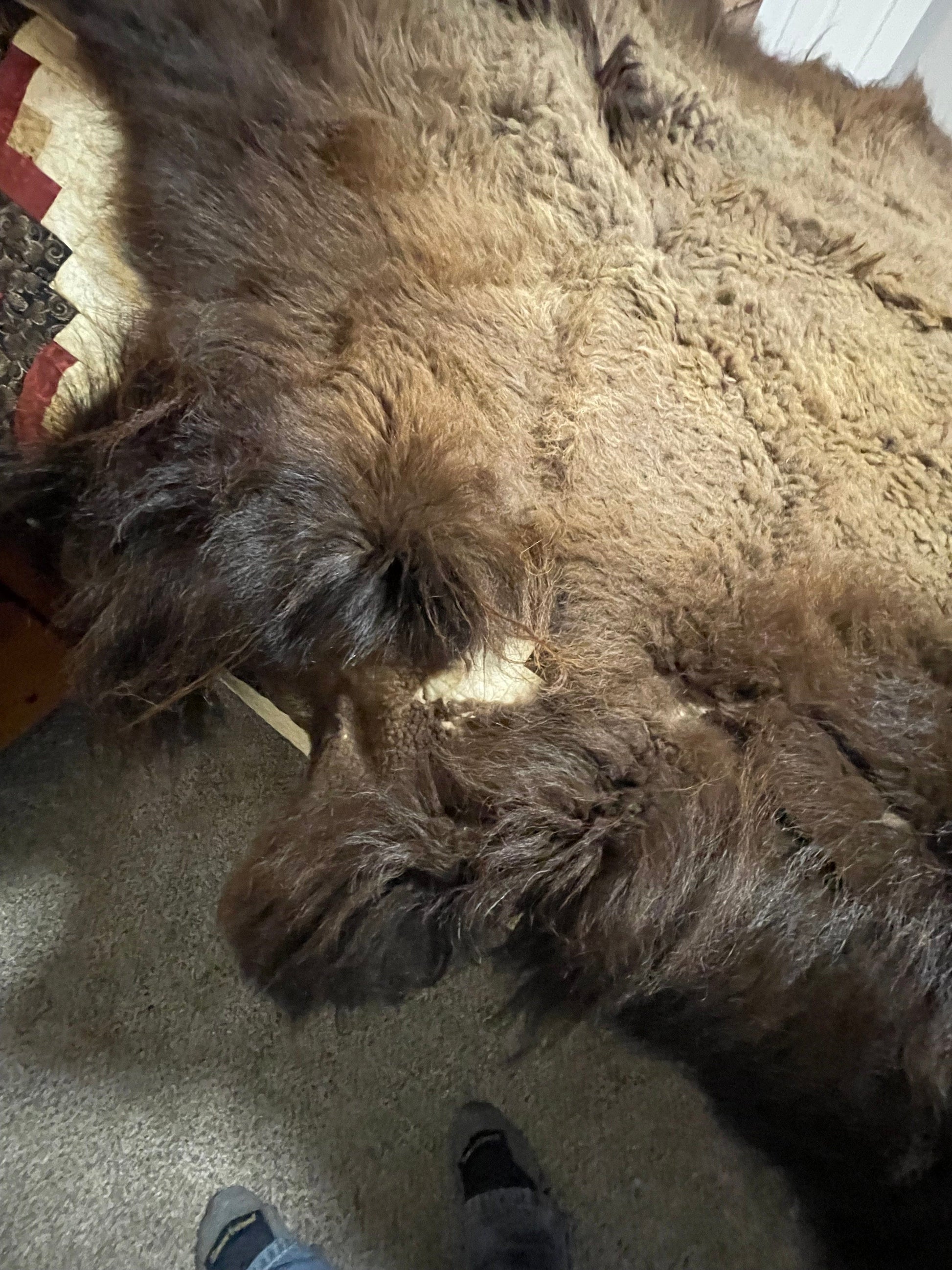 Each bison hide has its unique markings and are subject to small visible blemishes, scarring, missing hair or holes.