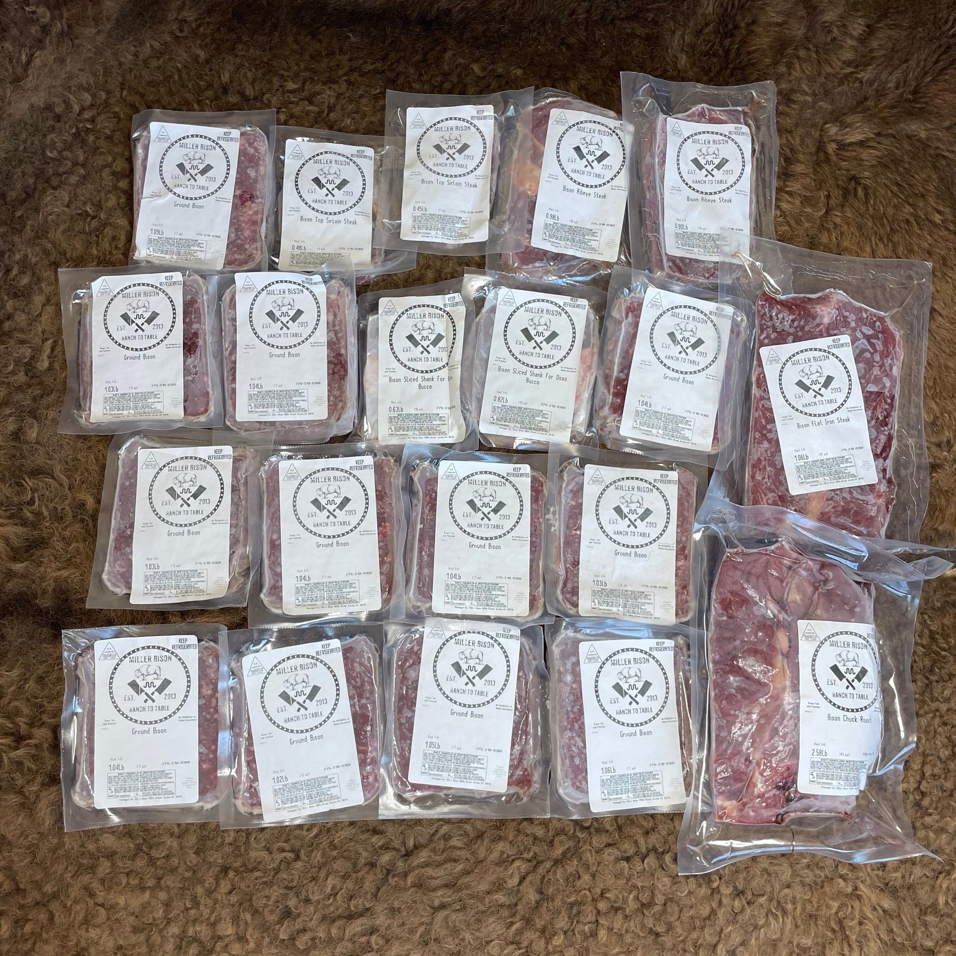 - 8-12 lbs. Ground Bison: Packed in 1 lb. portions.